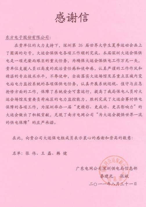 8月23日,世界大学生运动会在深圳圆满落幕,开源建工集团有限公司作为大运会唯一保电企业见证了世界大学生体育运动的蓬勃发展。开源建工集团有限公司技术中心系统部与工程部坚守“忠于职守,全力以赴,誓保大运电网安全”的信念,联手实现了大运保供电期间系统零故障、零缺陷的目标。
