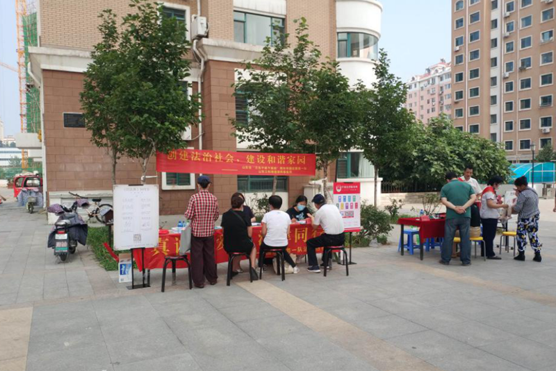 7月16日下午,开源建工集团有限公司党委、市国企服务一队联合到芝罘区世学路社区开展了一场“真诚关爱、法律同行”民法典普及与理财咨询服务的“双报到”活动。